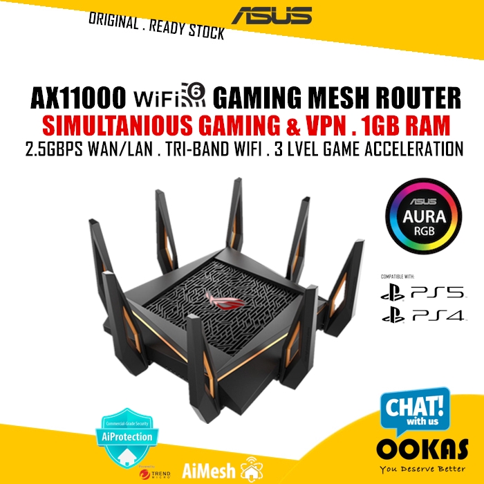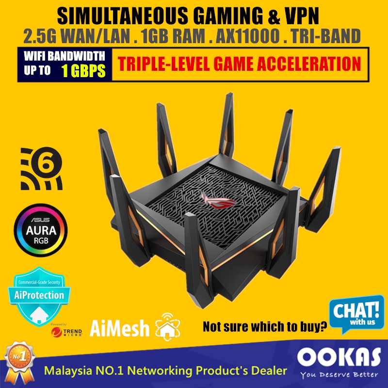 Asus Rog Rapture GT-AX11000 Wifi 6 Tri Band Wireless Gaming Route AiMesh Router