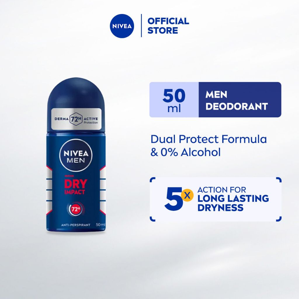 NIVEA MEN Dry Impact Deodorant Roll-On 50ml | 72H Anti-Sweat & Odour Protection